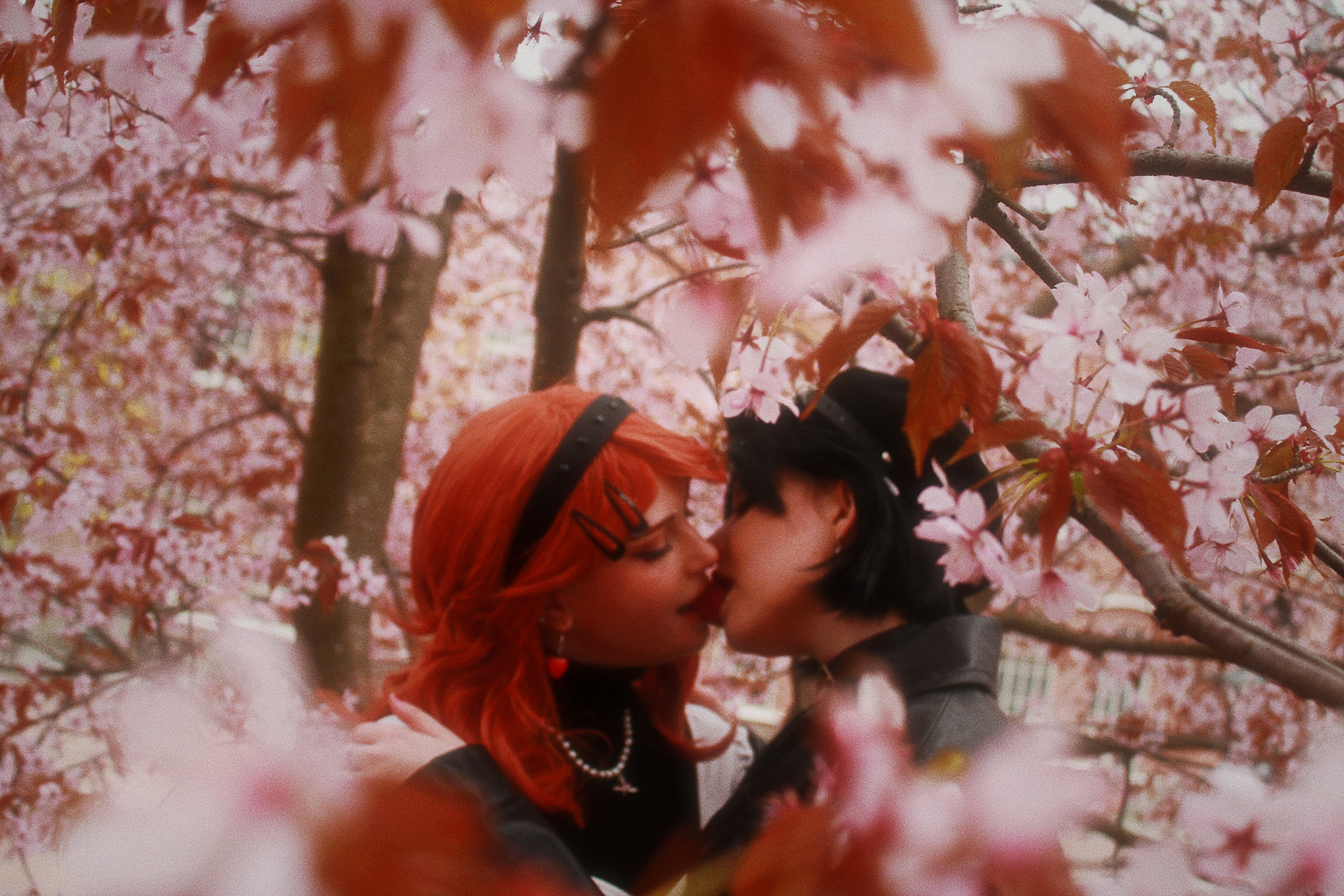 ”Cherry blossoms, starwberries and doomed yuri. I wanted to ”frame” peaceful moment of the nana’s with cherry blossoms, and have it look like an old film pic like its a preserved memory.”