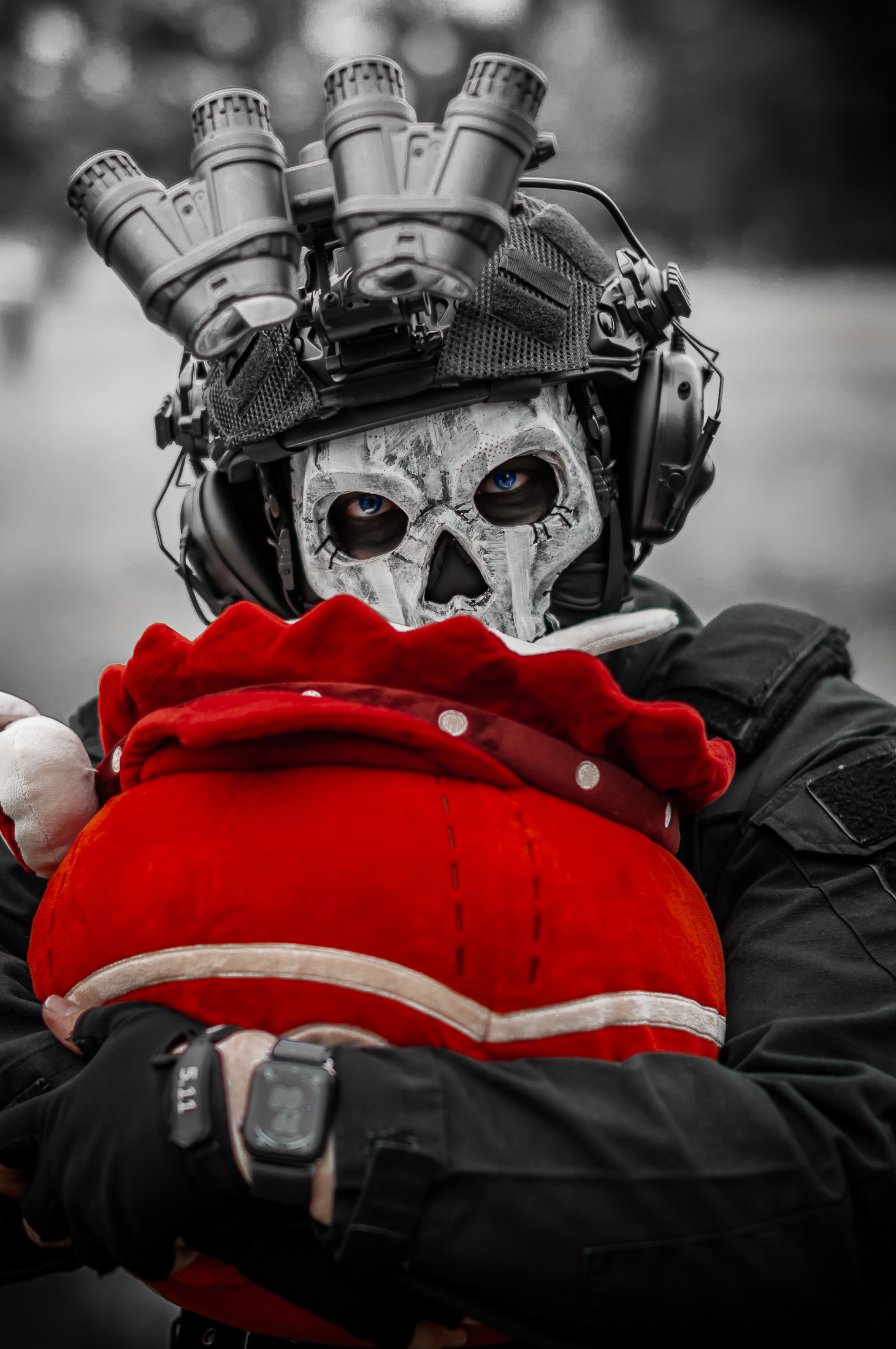 ”Vuoden 2024 Ropeconin aikaan lähdimme mallin, sekä muutaman assarin kanssa tekemään pitkään haaveiltua 2B -shoottia, jossa ajatuksena oli päästä mahdollisimman lähelle alkuperäismateriaalin ”räikeää harmautta”. Ja sitä varten teimme muutaman kikan kameran kanssa. Suihkutin varovasti hiuslakkaa kameran linssiin ja asetin rungon sekä linssin väliin pätkän kalastussiimaa, jotta kuvassa olisi pehmeä, sumuinen tunnelma ja mahdolliset kovat valot saisivat aikaan lens flaren. Hernesaaressa olevalla, vanhalla teollisuusalueella löytyi kuvassa näkyvä vesilätäkkö, josta mallin assari/autokuski/poikaystävä sanoi, että sopisi hyvin kuvauspaikkana. Hetken säätämisen jälkeen saimme lopulta kuvan, joka herätti lievästi ilmaistuna voimakkaita tunteita niin mallissa, kuin kuvaajassakin, sillä varsinkin värimäärittelyn jälkeen kuvassa oli hyvin vahva peleistä tuttu ”räikeä harmaus” ja pienen vesilätäkön peilikuva korosti 2B:n hahmon repaleista tarinaa, joka on täynnä uhrauksia ja taistelua, sekä sitä, miten 2B:n hahmo murtuu tarinan edetessä.”