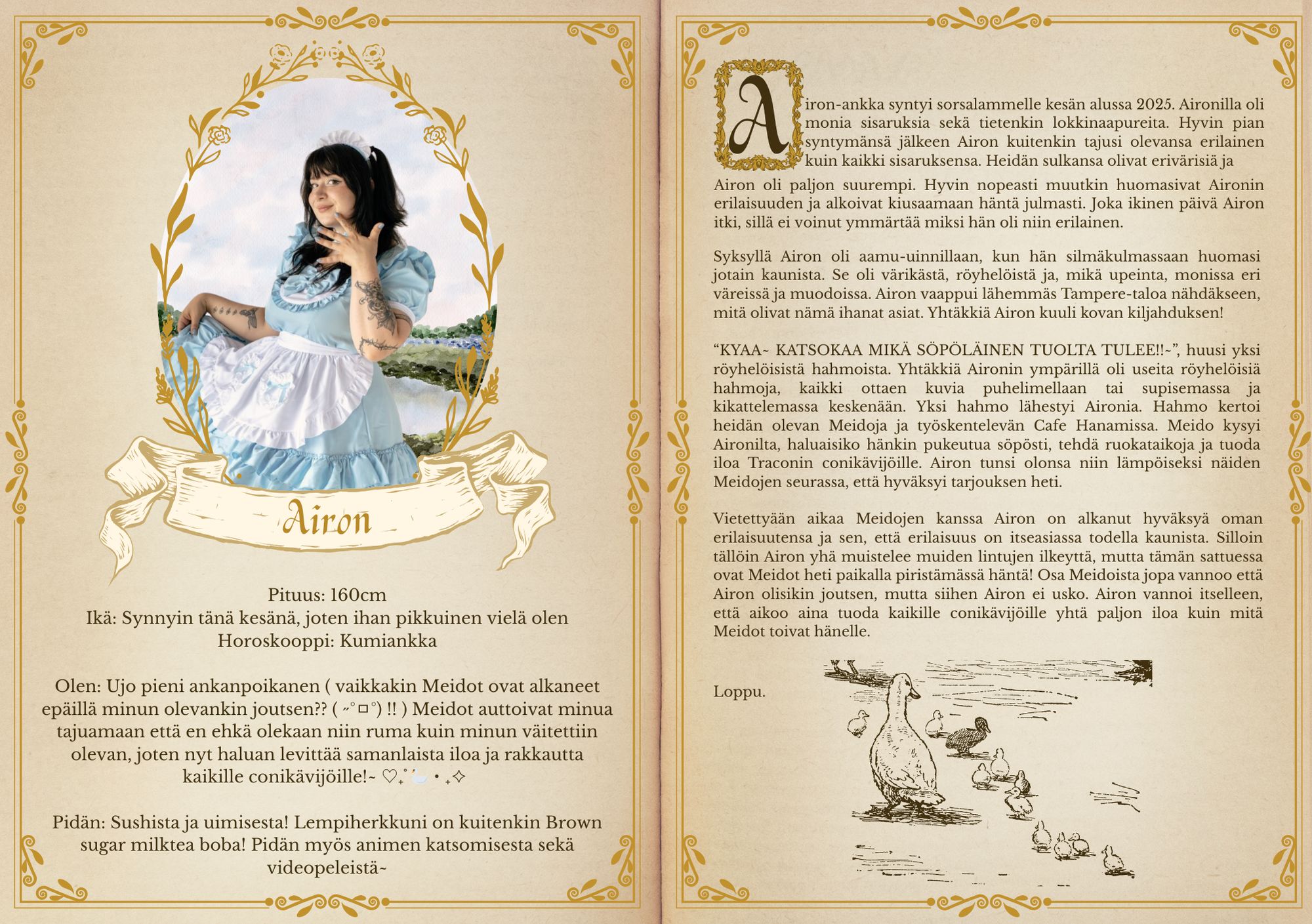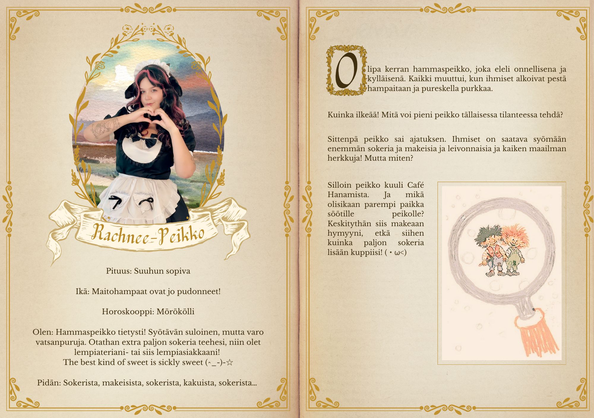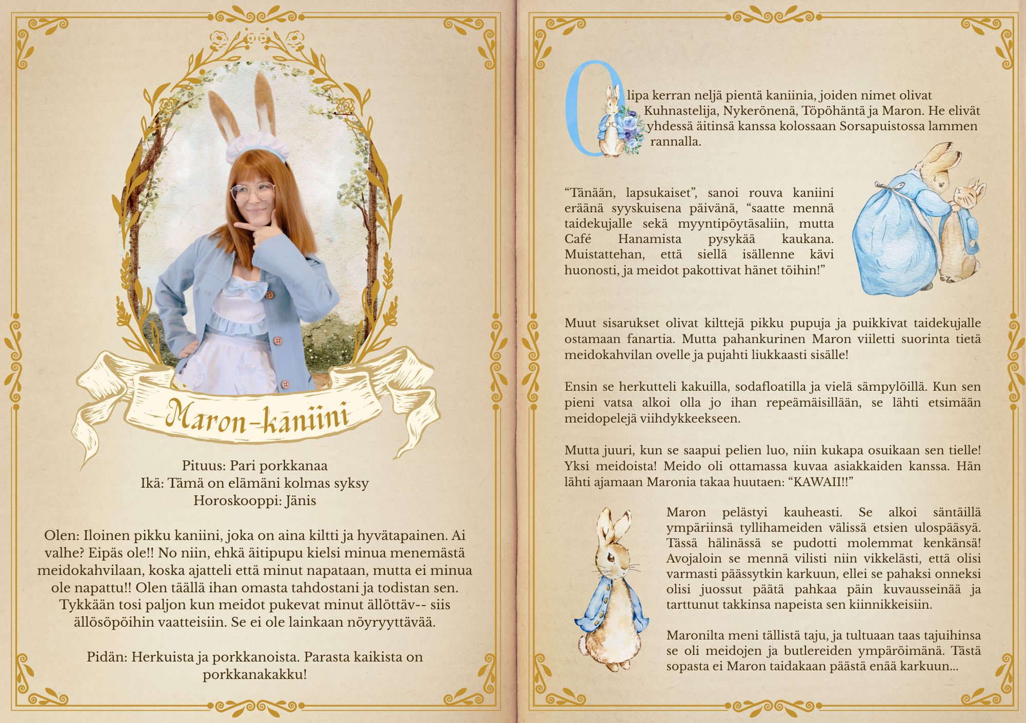 Meidot ja butlerit Tällä sivulla voit tutustua Café Hanamin satumaisiin meidoihin ja butlereihin! Voit klikata kuvat suuremmiksi tai avata ne uudelle välilehdelle mahdollistaaksesi suurentamisen.